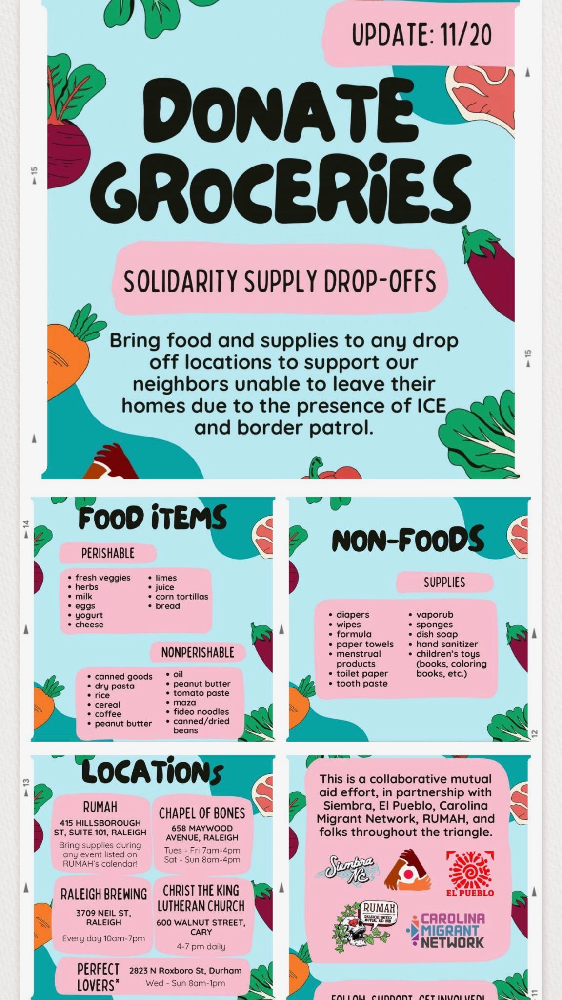 Update 11/22: Multiple sources report that ICE has left the triangle. However the DHS has said that their operations in NC are not over. This is just the first wave threatening our community. We must stay ready.